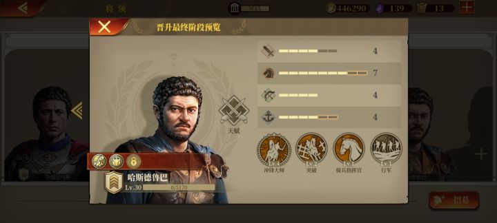 李将军:上限很高,但不见人玩。艳后:最强海军,缺点是这个游戏海军没人玩98:很好玩,建议升两次,霍去病的下替。小象:象兵真好玩!技能一般,可以晋升两次:#帝国军团罗马 #攻略 不建议新手去培养,原因如下1:前期培养成本高,不如养金将2:没有加冕数值偏低3:君王试炼用不
