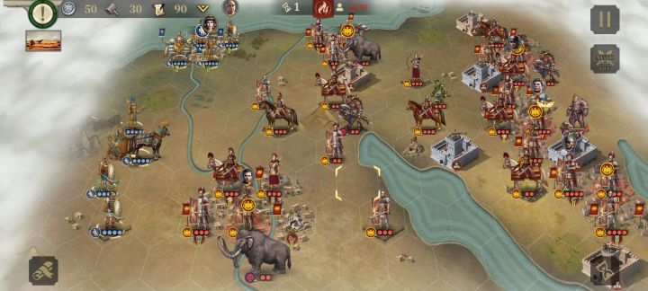 费了好大劲拿到海格力斯最难的一关3星,简单讲下思路吧:第一,你不管是有氪的还是没氪的都必须守好你的两队弓箭手和秦俑,因为这关的几个骑兵包括两头大象都需要弓箭手去清理,如果你的弓箭手早早残了就重开吧;第二,你在开始进攻右侧城的时候记得派个剑士或者其他的什么单位去攻击最下面那个城的城防,这样才能让这个城开始出辅助步兵或者轻装步兵,这对于你完成第二个任务至关重要;第三,站城凯撒还有野生弓将还是得靠你的战车和重步才能解决,所以在攻完右侧最上面的城之后一定要给他们补充保证输出,而且最好在第十二回合之前能干掉凯撒,否则时间会来不及。补充一点,尽可能利用好光头的海军技能,我开局就让他下海换船了从海路进攻海边的城了,还有记得让艳后带吸血刀,很好用。整个过程一个血包都没有用。