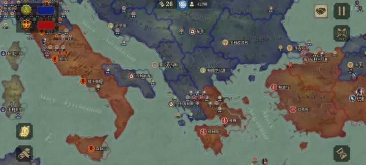 第一战:开战后第四个月,中央方面军火将军的御林军征服了位于克里米亚的罗马附庸:博斯普鲁斯国西部方面军在第六个月消灭了亚美尼亚。霍军团征服了卡帕多细亚,开始和罗马正规军霍军团征服了卡帕多细亚,和罗马正规军开始交锋