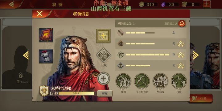 吐槽:我个人排版在我编辑更新时看起来挺工整的但是到显示给大家看的时候我个人觉得效果有一点差强人意.评分标准:五星神将,四星半无脑强,四星很强但有局限性,三星半强,三星包括三星以下凭借个人喜好谨慎购买.一.步兵一.金将区1.斯巴达克斯(三神之一)向往自由的伟大斗士天赋:步兵大师所在区域周围两格步兵攻击力 15%三神光环技能不用多说是真的强既能辅助进攻有能打出巨额输出技能:战吼士气高昂