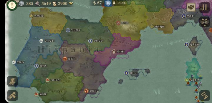 经过布匿战争,凯撒时代大部分小国的经验来说,小国玩征服[奥古斯都还没开不晓得]就得靠外交咯!后期基本打钱挂机。大佬每回合操作四五十合搞定,咋们新萌就先挂机流吧比如凯撒时代坎塔布里[因为没打过我要章]开局疯狂其实是好事,因为外交是看你自己收入决定的。外交一次是你一合的全部收入。所以第一回合:外交:拉即将参战的队友或离你最近的国家比如沃尔卡,还有纳撒摩涅斯,博斯普鲁斯王国,阿维尔尼,布立吞,迪