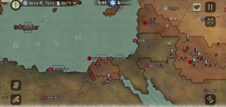 征服五,沙特阿拉伯。第五回合就围剿白匈奴和匈人帝国两员大将,感觉这把稳了,不过帕西斯那边好像打不过,避免伤亡先不打,等步兵过来再打比较好吧(钱我全给海岛了,希望搅屎棍能帮我下,参战进度挺快的,主要是救一下西罗马,西罗马就是牛马)艹,打完回来了,服了,西牛马,请的海盗没少花钱,屁用没有,和埃及去下方抢城,nnd,我是请你来帮助西罗马的,你tm就抢城,10回合后翻脸不认人是吧?总之罗马那边已经沦陷了,不想打了,重开吧。气死了这海盗