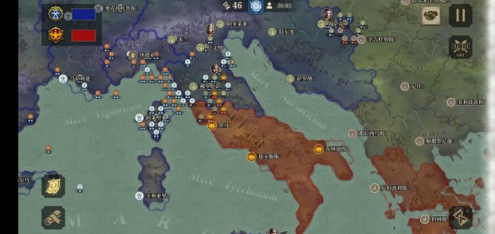 征服三也太不平衡了吧,一直很想吐槽,屋大维方占了七成领土了至少,安东尼方只在东南区略微占优,其他地区都是劣势,我都不想打安东尼方了😂😂😂😂