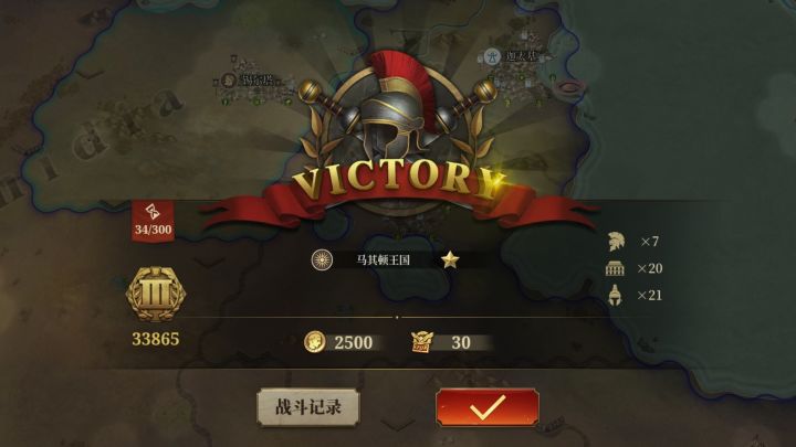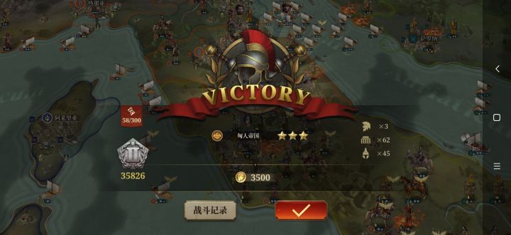 虽然晚了,但还是想发一下用了弓主,霍将军,庞培,20多个回合之后我觉得稳了,懒得操作了,就挂着让电脑自己打了,不然应该是可以再快一点的(大概)之前在时间内打的那一把忘记将领数量限制,这一把就没赶上了,嘤嘤嘤