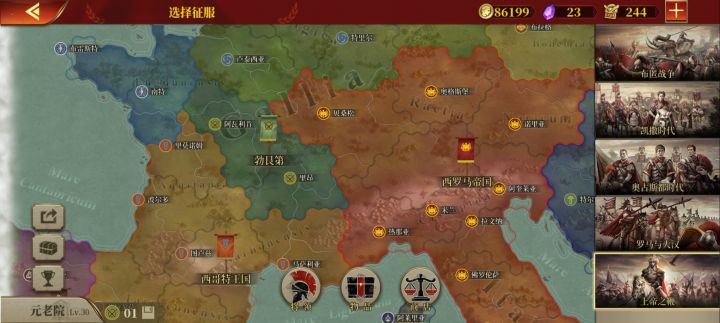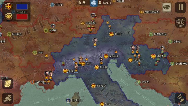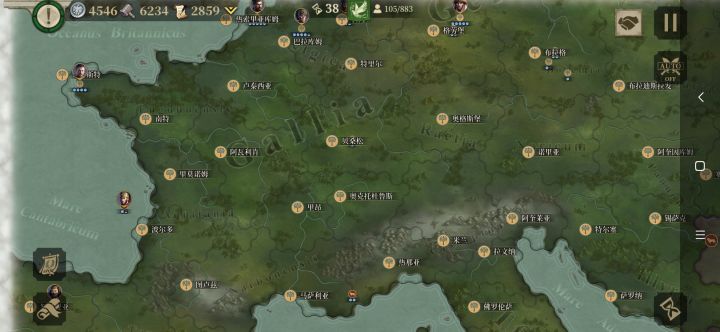 本来想打西罗马游击战,结果好家伙上来给我爆兵,我看着罗马本土是够呛能守住的,只能跑了😓