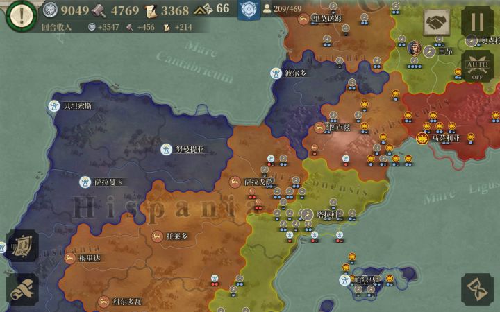 我战车天下无敌!还是主要是盟友太拉了,不到30回合,就剩下我和罗马了。被迫偷袭迦太基。拉长战线打马其顿。单打独斗真的累。