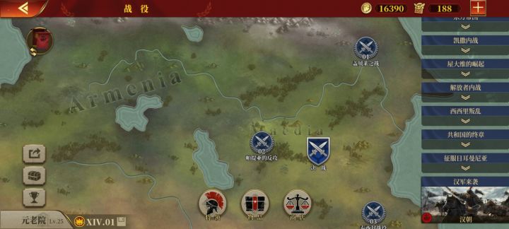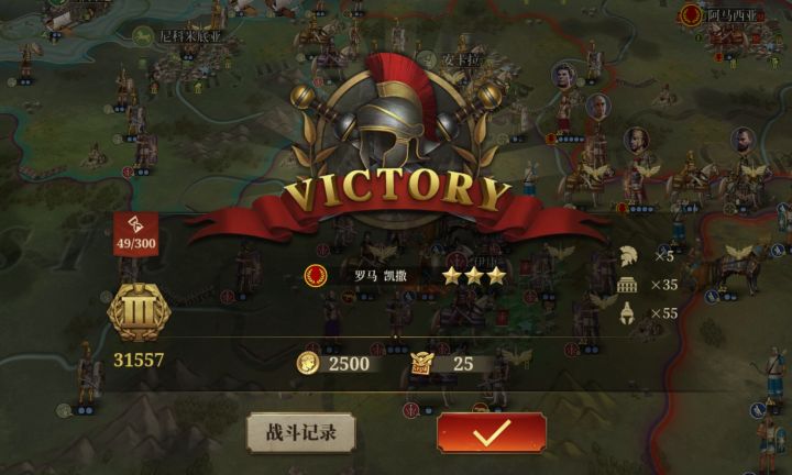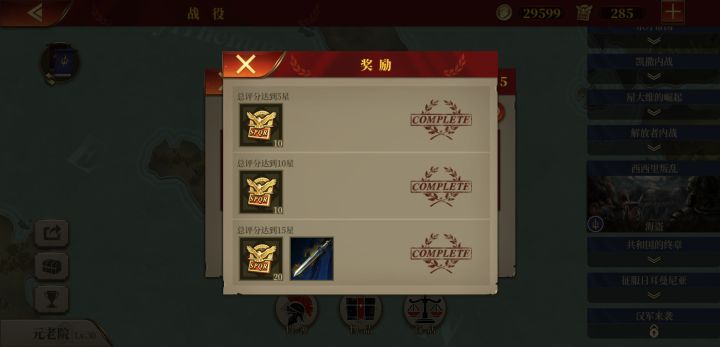 战役自从卡关西西里支线的决战后,打到主线13章就没再打了,这几天也就一天过个征服国家,就差这四五个国家征服二就全通了。平时升升建筑,攒着勋章。等我把克拉苏和德弓换了,凑够11个将再把西西里平推了去(君子报仇一周不晚)