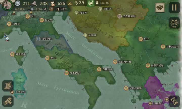 一统挺有意思的,上一把同盟打得太累了,罗马就没收拾了,这把昔兰尼倒是想真的做这个准备。罗马也太不给力了(* ̄m ̄),打到一半被迦太基和图爹给灭了,幸好打钱给了同盟,,挡一会儿被我重新打了回去,顺手从叙拉古打下罗马,就是伊利里亚那一块地方,城被他给抢了,人都是我杀的,不过嗯嗯,言归正传,既然想要统一地中海,就要打得干净一点@流氓国:要钱没有,你地倒可以给我