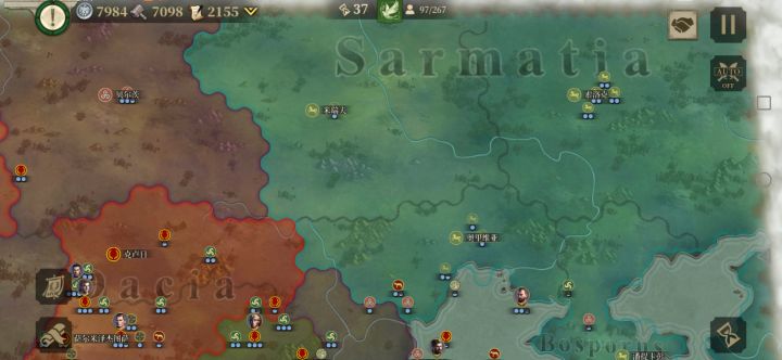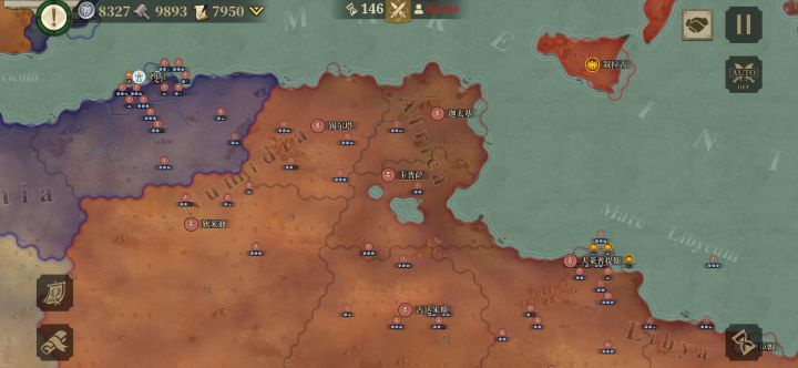 征服二努米底亚王国这个国家是真的适合辅助突击,以前是队友是它给了后备力量,是敌人也是它突然出现猛地突突。今天我玩这个国家,发现队友打得不是一般的爽,个个破城杀敌,我帮他们清理干净布立吞和号角国,追了几个回合才赶上大部队。好家伙直接列强作风四处抢地,版图真的好乱好丑。凯撒是真的贪安卡拉都归它了,哪里都要有块地 最后只能勉强来个乌克兰了。