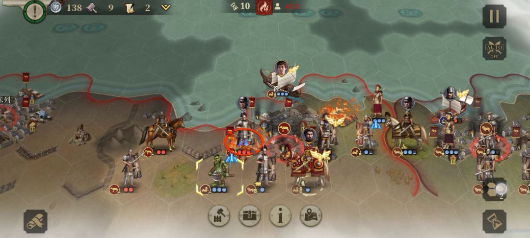 西罗马全宣战 胜利!延迟两回合 事实证明我是对的 第三回合宣战战况过于激烈 新都拉文那几度易手 全靠庞培死守!战况最激烈的时候我只好向大汉王朝花重金购买了五编队弓弩秦俑 战后只剩下两队 埃提乌斯扼守罗马 庞培 秦俑 屋大维死守拉文那 凯撒 贝利撒留 韩信 据守 布林迪西 维钦托利防守 阿莱里亚 不知名的罗马将领防守卡利亚里 罗马贵族年轻将领负责进攻!