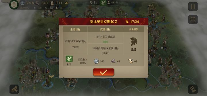 我要退游了,以前玩电脑版,急行军后期三回合一次,现在手机版1回合一次,主角带上攻城神器加上四级攻城加上四级行军和罗马战纪后边只有安东尼勉强跟得上,接下来征服就是逛世界,那种战役里要占地区的基本白送。虐AI连征服四的极难都只是逛花园,一路偷一路卖。决战的加入倒是有点意思,让大家体会一下尬癌,安东尼素质五连和敌人拼到残血,第二回合就被收割了。一个周,凉了半年的罗马心。
