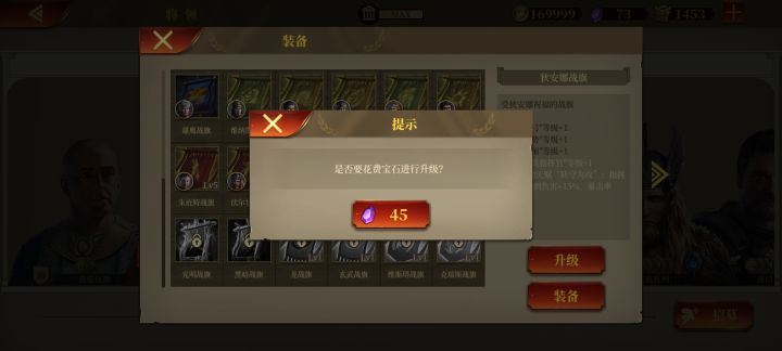 如图所示,一个5级战旗升满需要180紫钻。#帝国军团罗马