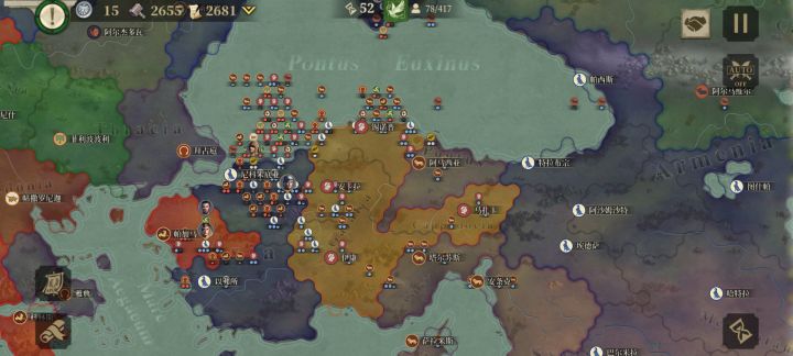 后面非常顺利。盟友们派兵帮我打下来了一部分地区,尤其是埃及,兵一堆一堆的涌过来。最后竟然到了难以移动将领的地步。
