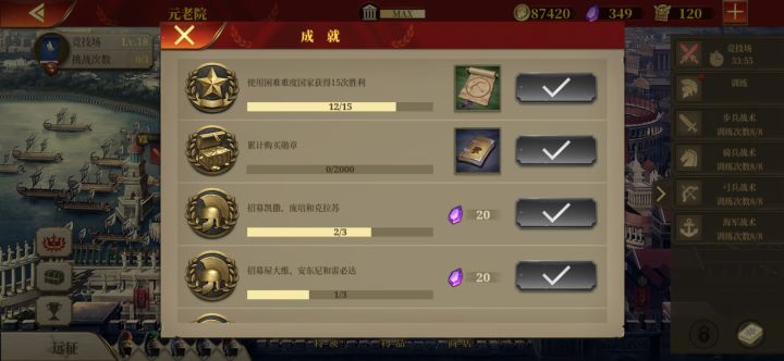 本来不想发竞技场的,真恶心到了,三天没赢过了😂有人说占位,我个人感觉没什么用,蛮族勇士旁边三个将两个弓一个战车就和战车死磕,骑射就和标枪兵对射😂罗马军团追着大象戳,骑兵看心情,心情好了砍下步兵,心情不好砍标枪兵砍一下骑兵😂,还经常放过对面弓将明明就剩一编了,我就是不打为了玩,被白嫖还出了暴击,搞的我都想提刀上去砍了自己的将
