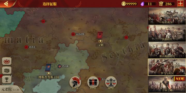 一星国,普兰尼,共计耗时68回合、任命8名将领、占领51座城市中心、剩98支军团。不过,这个战车应是被取代的,虽然是特色兵种。
