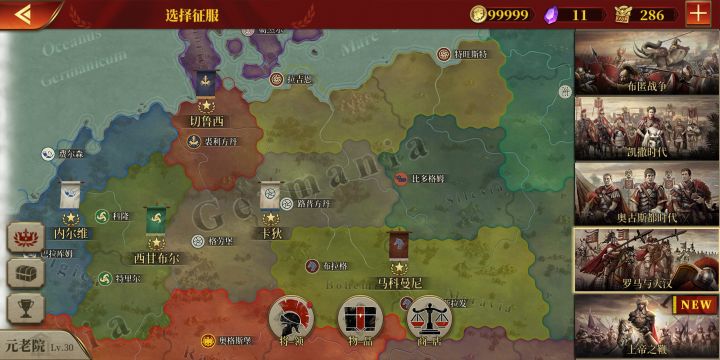 两回合速通,罗马人的撤退,只要击杀苏雷纳就行了,但一定要两回合,不然那个近卫步兵会站在那个点上,当然,也有计划b,可以招出猛犸去打他,但要要留一个将在那个步兵上