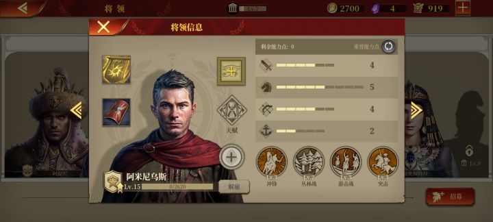 我把屋大维换成了米弓,安东尼换成了霍去病,稳妥不?安东尼跑的挺快的,就是血量不高或者换成这个日耳曼人?然后我还是把指挥官培养骑兵将领感觉稳妥点,我前面一直在用火炬这个技能,感觉作用不强换成了攻城