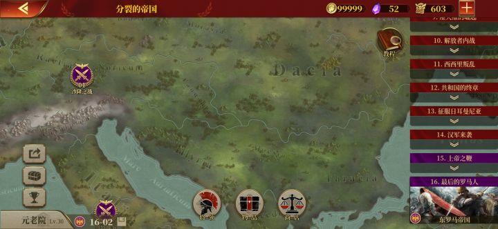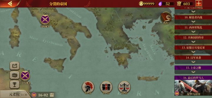 我一直用庞培,今天换一个维步,按在轻装步兵,输出正常,前期为我闯巴尔干,打马其顿立功,就是速度慢了点。我还以为超过30回合,是银质。共计耗时36回合、任命8名将领、占领47座城、剩44支军团。