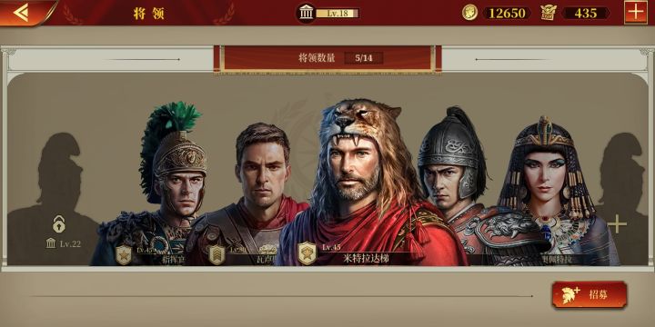 战役全部3星通过,征服1所有国家肝完了,目前白板,庞培,霍,米弓元帅,还想玩下其它将领,去哪里才能肝出来勋章