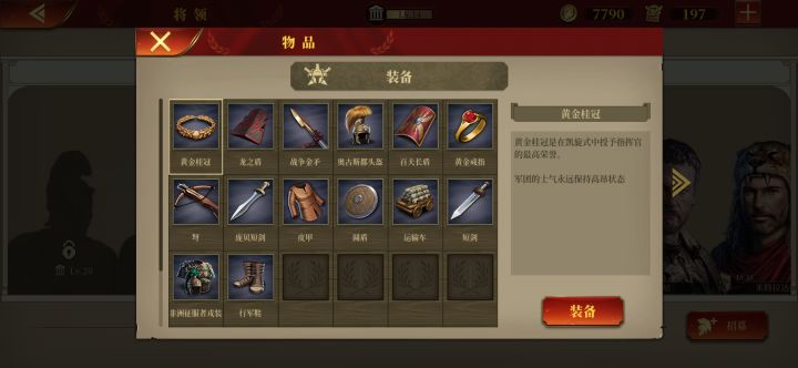 我现在就一个黄冠和一个庞贝短剑有点用,其他的要买什么装备啊?先买装备还是先升军衔?