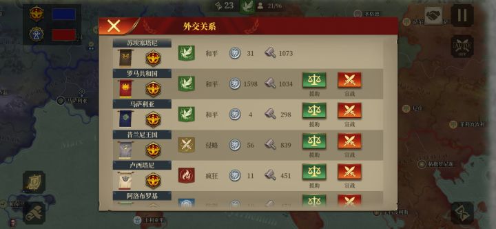 有机会吗?已经在给罗马钱了,大概每回合100块,然后我在和图爹打拉锯,这把脸特别黑,骑兵的那个几率触发的很少,就剩两个将还没上,一个米弓一个艳后