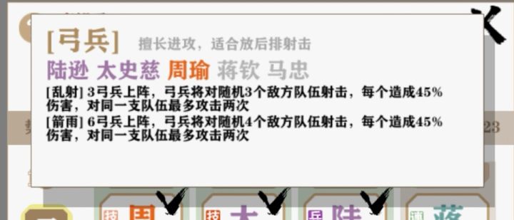 兵种放置原则1、肉盾放前面,输出和加血放后面(牧师方士、弓箭)2、九宫格。一共三行。每一行的放置原则(高攻击力放前面、低攻击力放后面)因为是按照『1、2、3』『4、5、6』『7、8、9』的顺序输出。高输出先出牌,打出爆发性伤害。低输出后出牌,补刀。………………分割线………………鸡肋功能,我从来都不用,不然一局的时间太长了。………………分割线………………【四庭五子三攻】【6戟3方】【