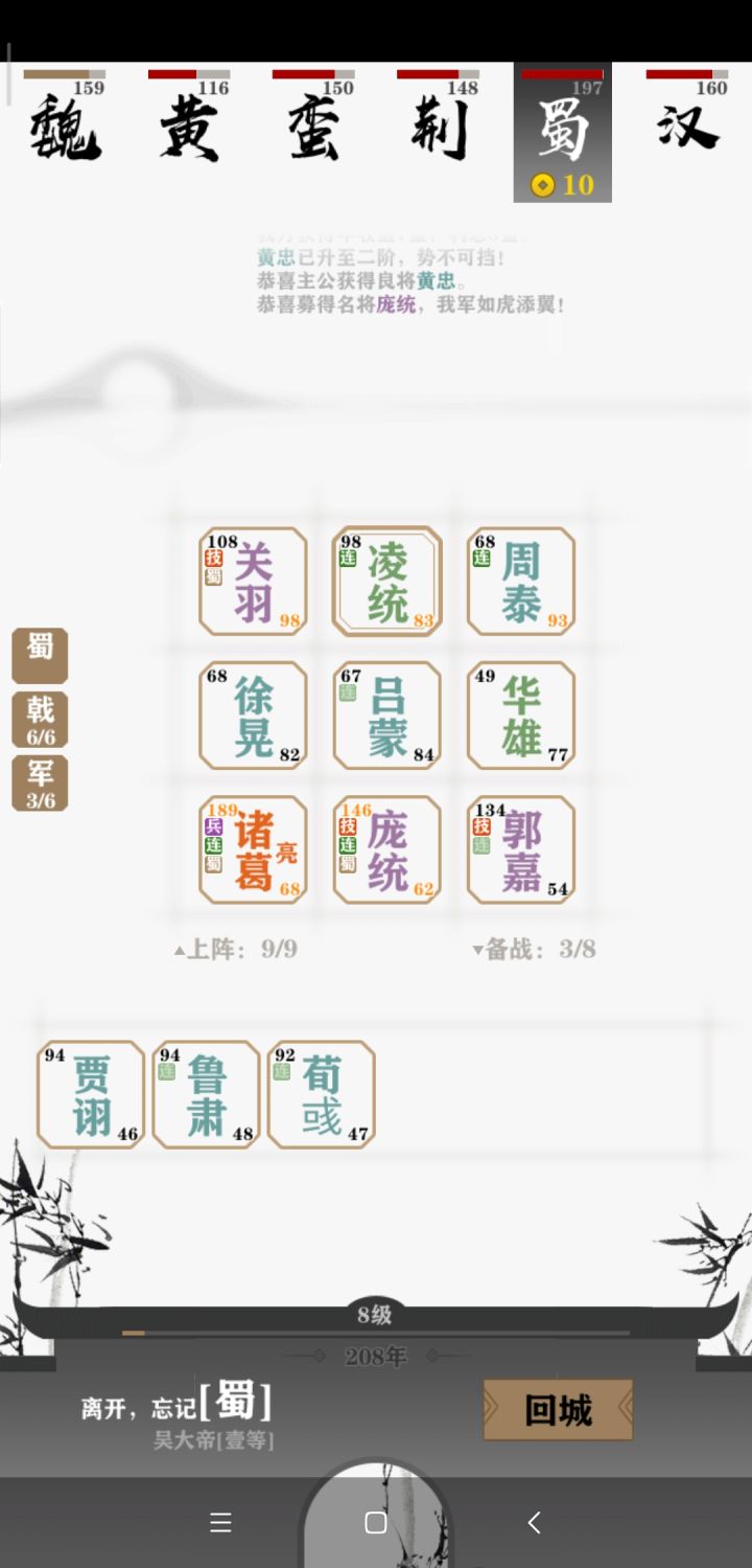 核心是吴国的四都督可以把三兵种升级到六兵种配合周泰,凌统凑出三戟,配合太史慈凑出三弓,再加庞统和诸葛亮凑出三军师,完美。这个没诸葛,差一丢丢。