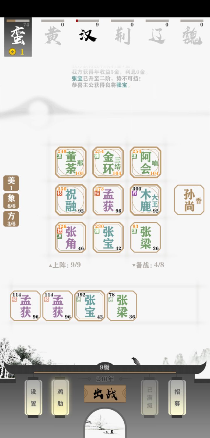 搜索只做来钱的任务,打马贼,跟救妹子。前期不合将,有钱就升级位置。有蓝买蓝,有紫买紫。防御高的文将丢前排。8将无脑可以刷红将。有红将任何势力都流弊。董卓的七星宝刀。张角的太平天书。曹操的倚天剑。是可以卖了转给红将的。不是每个都可以拿。这个貌似是BUG。最有用的两个美女就是貂蝉跟大乔。高攻击快速秒人。跟兵力属性多防御高!蛮族最坑。电脑运气好,来几个群技能红将。轻松吊打单蛮族组合。蛮族只