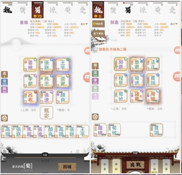 這陣容強得令人懷疑人生!連虎煞六禁也不是他的對手。根本就是4督,虎煞,盾禁和阿蒙的合體,真是天下無雙!運營:開局先買綠盾戟打工,直至第10回才升至6人口。期間有二星藍盾戟則從黃蓋,高覽,凌統,華雄其中一個賣掉。官渡至合肥不刷,可升人口。以後升至9人口,55金刷至0金。注:可以用周泰代替司馬;用鳳雛代替亮亮,看誰來得多。魯肅先三,其餘看誰來得多誰先追三。謀士和戟兵誰來得多用誰寶物:兵書→魯