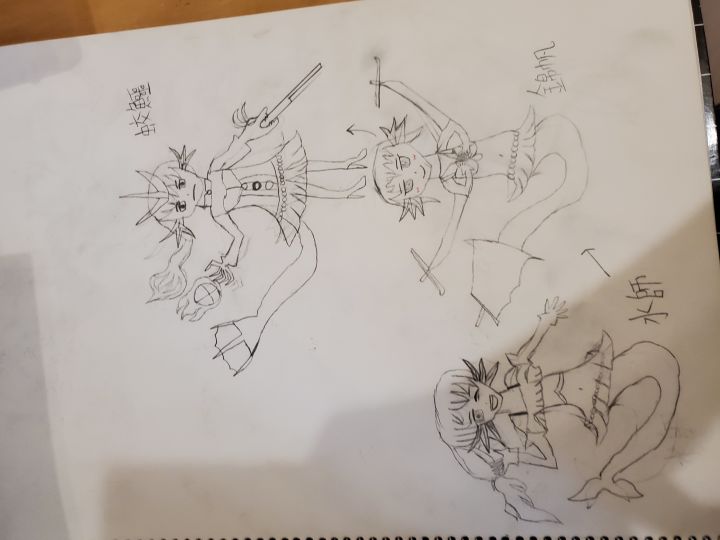 有關武將娘化的建議.前言:因之前小弟在一動態/貼文中建議娘化武將。因此,小弟在此以東吳的專屬兵種-水師為例發表建議。在上圖中,水師為一名活潑開朗的美人魚。靈感:水令人聯想起魚等水棲生物,且美人魚會使用各種魔法(例:防禦魔法/射擊魔法)。符合水師的高防及半AOE的設定。錦帆為一名害羞及感性的美人魚。靈感:錦帆的尾巴為帆,而兩手肘上亦有類似錦帆賊的大刀。少女在長大後,通常會變得害羞/感性。娘