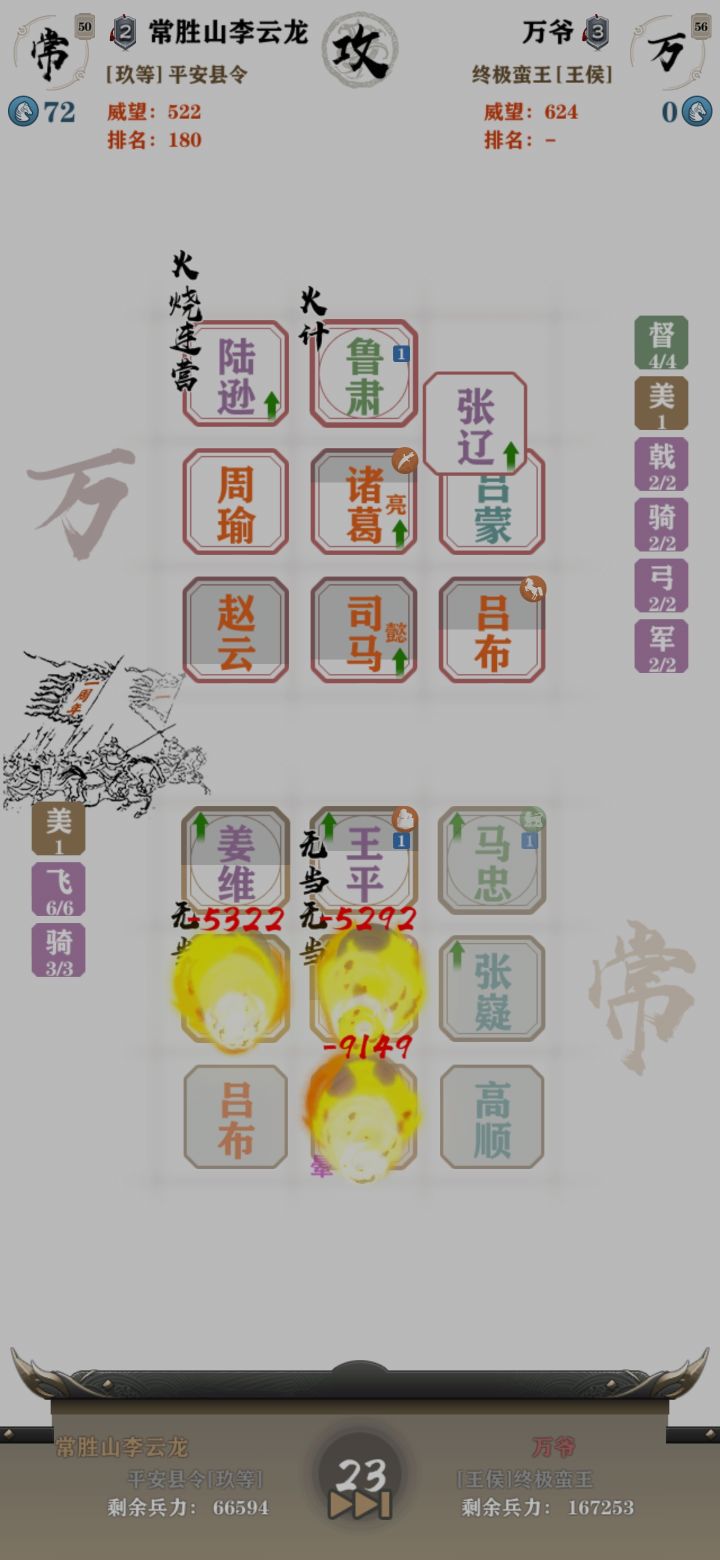 小弟以下的建議:建議把勢力減至六至八個。建議新增品質:精英(把部份名將升至精英)赤 (美人)>橙(絕品)>金(稀世)>藍(精英)>綠(名將)建議每勢力有1名橙將 和2名美人。建議將兵種縮小至盾戟弓騎槍方謀王: (王=禁)騎剋[盾剋弓剋戟剋盾]剋槍 方謀互剋 王剋王 剋X2傷害。被剋X0.5傷害。 盾戟弓騎槍對王造0.5傷害 王對方謀造0.5傷害。 方謀對盾戟弓騎槍造0.5傷害。兵種科