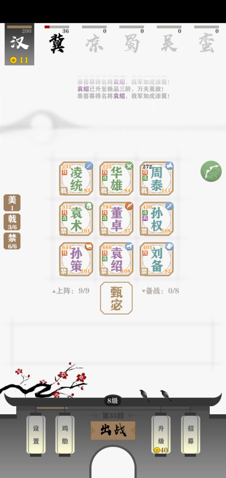 可以把备战位的武将造型改一下,只显示名字,不显示攻击,防御及武器,只有在点击该武将时才完全显示。[武][武]{“武 ' }[武][武][武][武][将][将]{ 将。}[将][将][将][将]还有,加油加油!