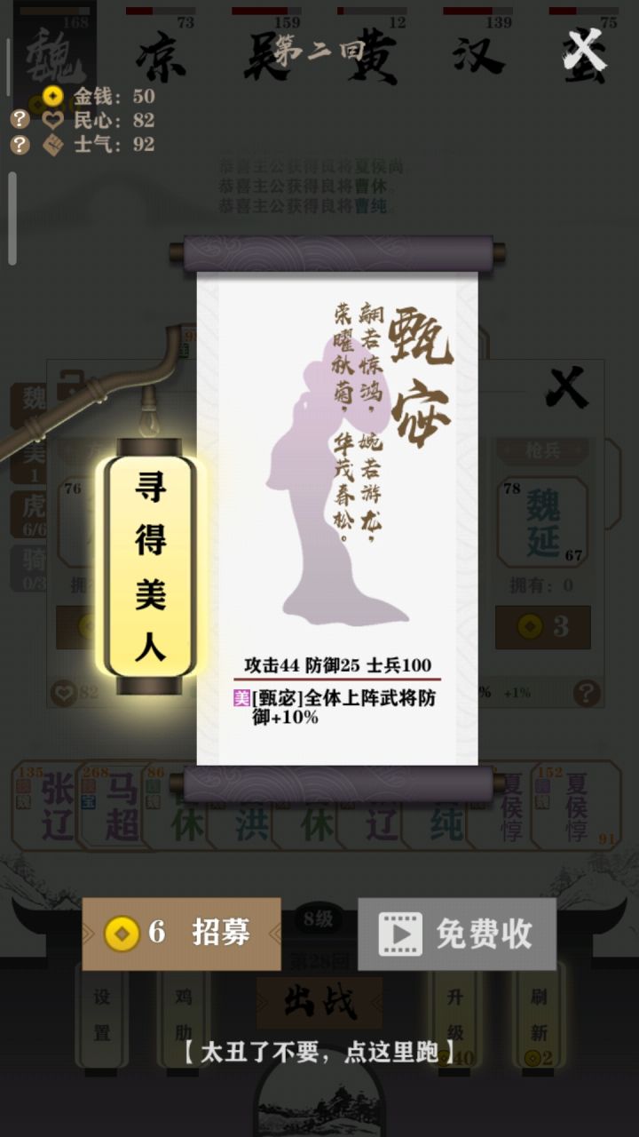 终于等到了更新!说实话,对这次的更新表示大大的赞。为了越来越好,发表一点纯属个人的建议:1、粮草和令旗让人头疼,希望策划可以考虑用赚来的肝币或者银币来升级自己的粮草。2、希望每个阵容的核心角色能早点拥有个人的专属装备及皮肤,ps:(^~^) 像公孙瓒这样的英雄,虽然三国演义不出名,但是史实也是很厉害的人物。3、提高美女的概率(盼着哪天可以三星美女)