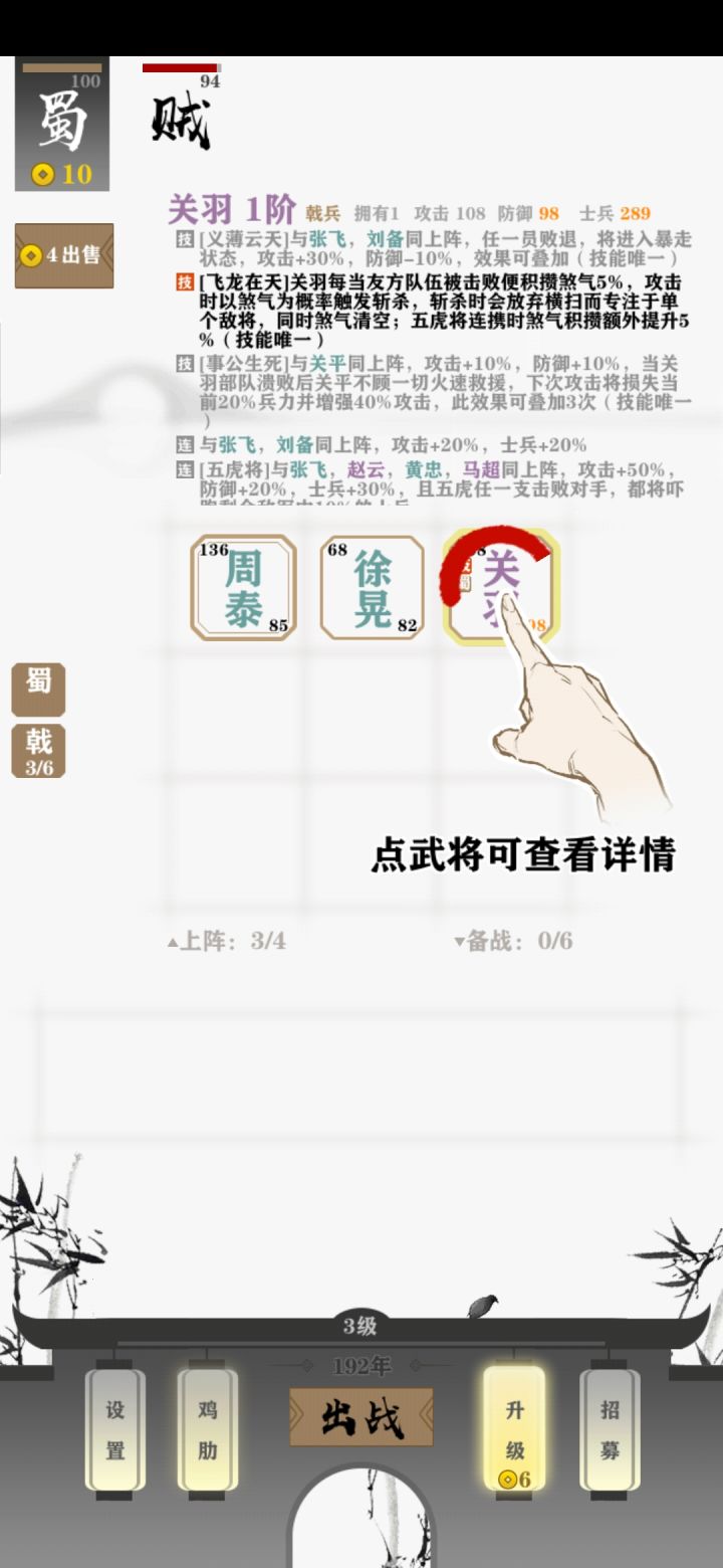 一直35血赢了不掉血,我强化了一下紫色将领强化2下黄忠