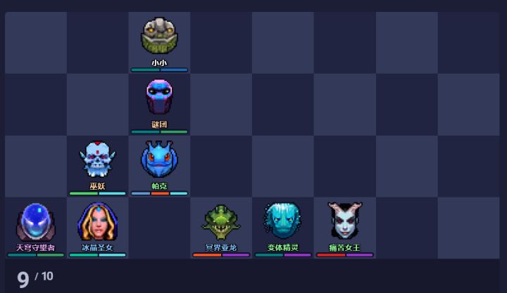 惯例先图【巨魔战将】(非常重要)是最后才搜到的,没有的话强度还是差一点,不过一般都能挨到最后面。核心天赋还是【失去天恩】,没有的话【无情】就只能叠一层,然后多一层【人族】,非常蛋疼。************一层【术士】+【瘟疫巫师】的技能+【全知骑士】的技能构成这套阵容的【回血】。三层【骑士】减伤,两层【巨魔】加速、眩晕,两层【无情】破甲。************装备尽量选择
