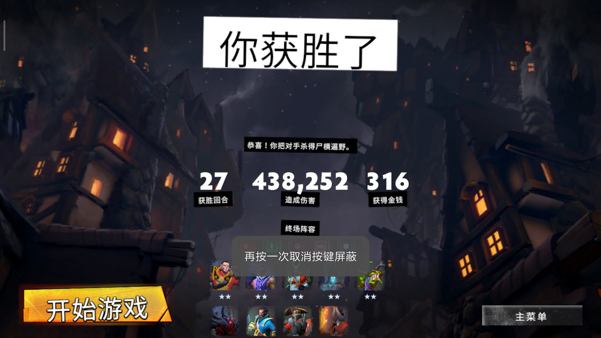 前期拼不出两星,各种被入,8人口四悍将加悍将天赋成型,虽然输出的猎人死了但是我还有三星剑圣加兽王……从10滴血锁住硬撑死第一名。感觉第一名10人口6法大招大完还有四个猛男心都凉了