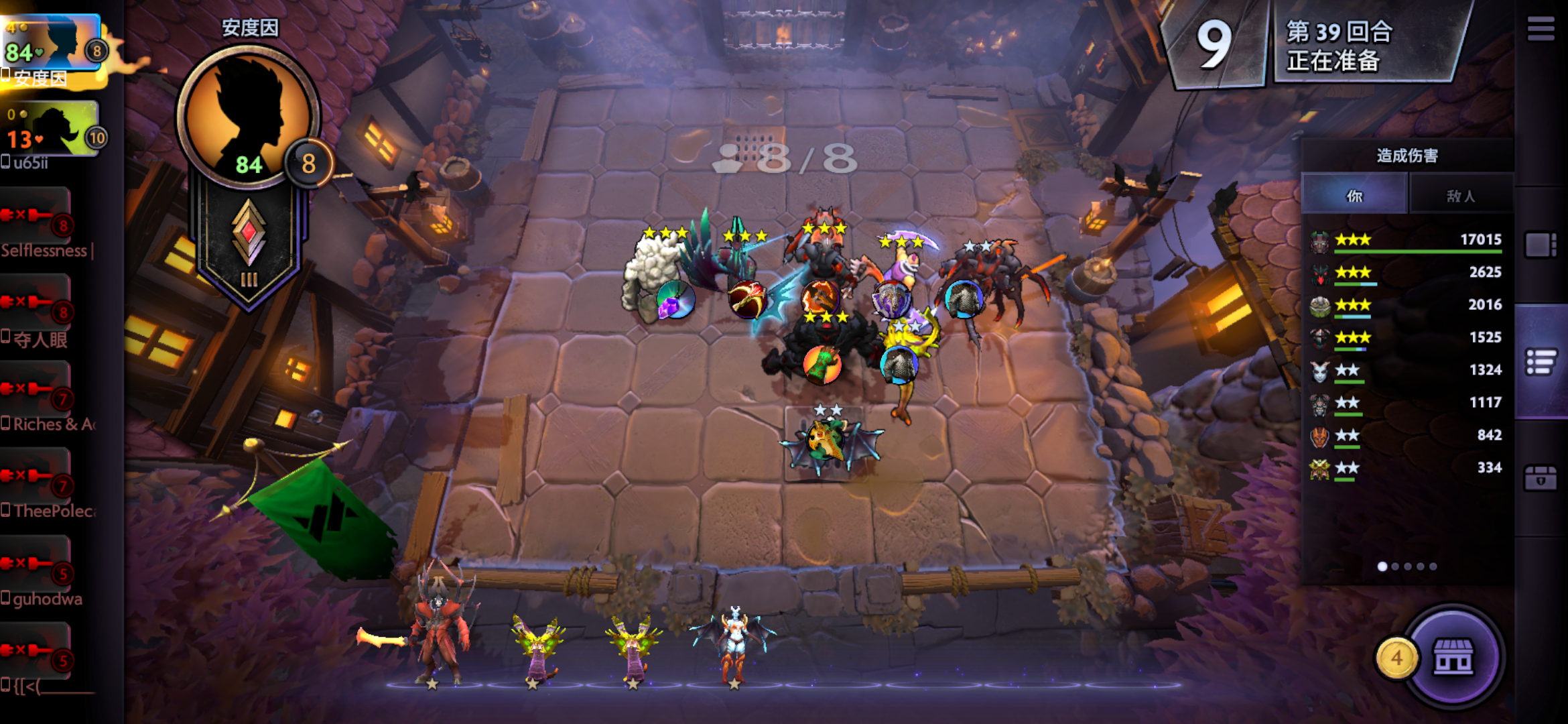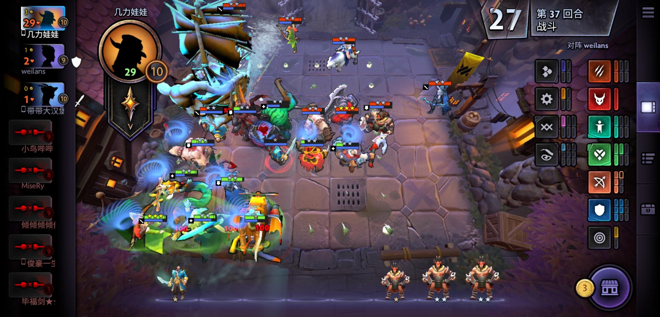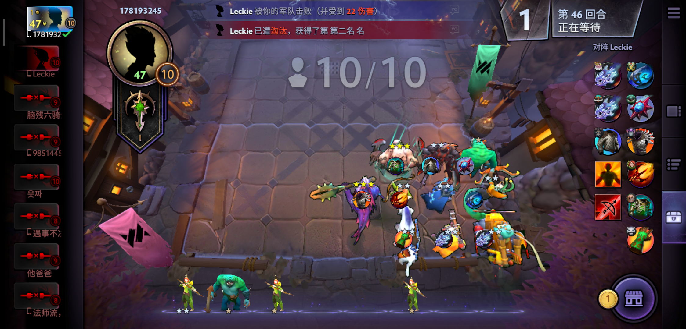 前中期我一路领先,到后期开始有点撑不住了,并且出现了两家比我强,一家是成型的骑士另一家是压我一头比我多一个潮汐的猎人。没想到这时他们两家开始内耗😂 并成功耗死一个,而我羁绊全一级阵容菜到抠脚仗着血多茍活了下来 🐶 最后一把决战时对面只有2血我还有十几,结果他比我先死 🌚回想了一下其实还是最后升10人口+小直升机拯救了我,刀塔霸业真尼玛好玩! 🙉