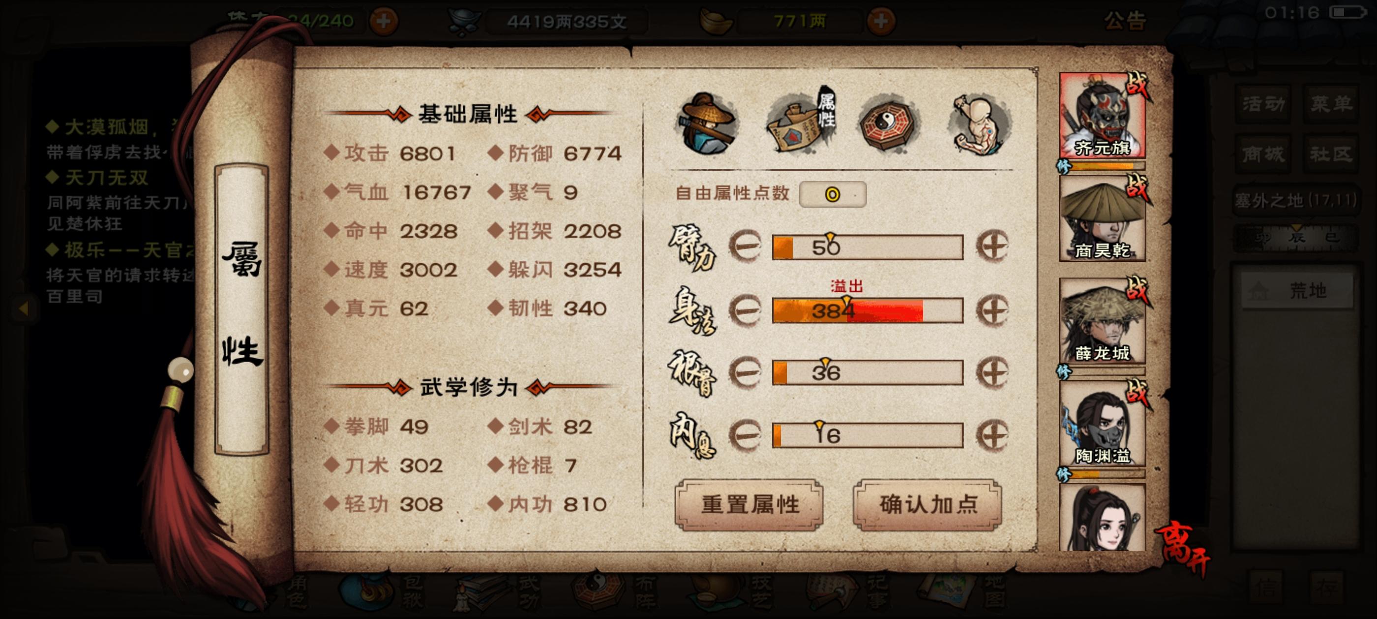 本篇将介绍关于前期属性点分配的内容目录一.属性点二.主角加点三.随从加点tip:分配属性点时加到点数条箭头处即为加满不溢出位置,超过此箭头即为溢出加点,见下图红圈位置tip:此篇加点只适用于前期,在后期当我们角色属性点数比较多的时候需要按照武学技能的阈值进行加点一.属性点1.臂力臂力可以给我们的角色提供攻击力,比如说主角,主角每加1臂力就能提高2攻击,当然每个角色都有其相对应的臂