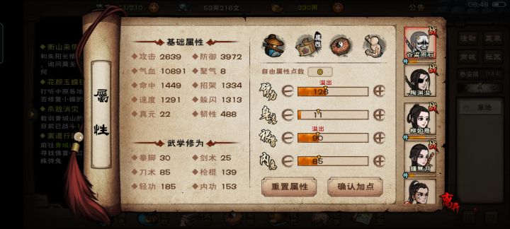 前期加点(随从)前排拳:疑血神爪+万象内功+身行空加点是醉拳的加点,但是我后来发现还是神爪好,因为可以降低对面的回血。套路还可以选烈阳,醉拳,五毒,都是给对手加负面状态的好套路。万象内功: 是前排实用内功,可以反弹对手攻击带来的负面效果(我的加点有百分之46.7的概率),还有最高百分之30的免伤,缺点是回血少。身行空,免伤4的固定和身法的一些比例加成。前排棍: 抗揍棍法(无暇)+碧波+凌