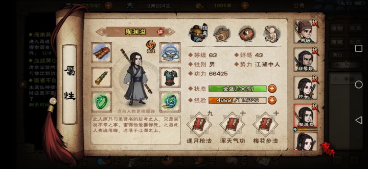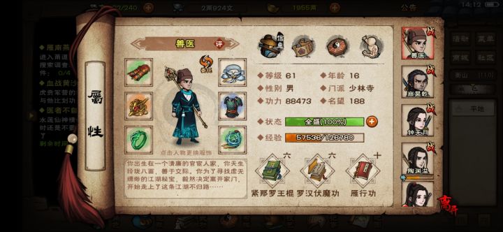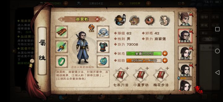 新手随从攻略,这是根据现在版本来做的一个攻略。开局天赋,跋山涉水。然后打开活动,寻觅知己,江湖小虾米ABYWD2填写本楼主推荐码!群879082311。一定要群里来找我,直接找公子扶酥兄。新手不会玩非常容易私坑!有人指导要顺畅很多。一。充了基金的号,1.男号,如果拳和棍。建议的随从,火工僧棍,商皓乾刀,最后一个随从很重要,杜剑或者月剑,这样就成了男前排。剑版本比较弱势,我们也可以用柳拳过渡,等孟