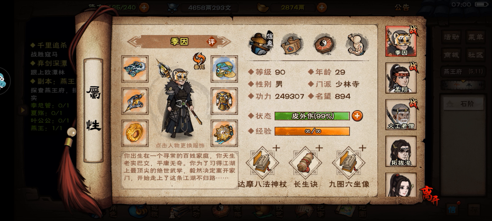 泠月三阶出师,10W战力,弹琴喝酒烧香吃药偃月阵。 最最关键的是找序列。(记得存档,不然序列可能会丢,10W出头平时多试试手) 内功8层没必要升到十层(拿满口诀+巨石阵残缺秘籍就可)