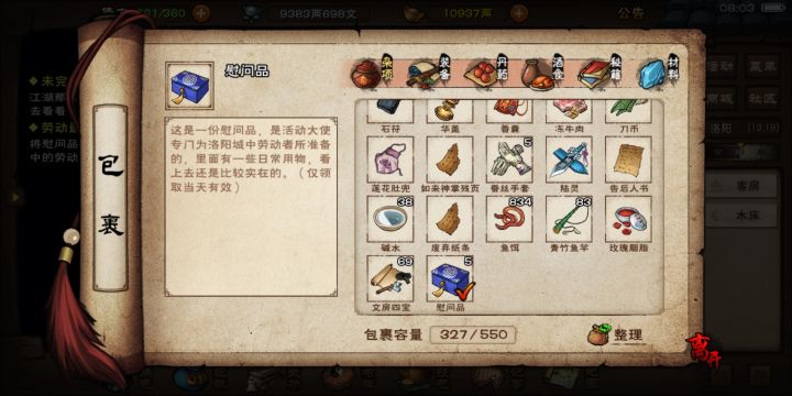 今年五一活动是每天分别给五位劳动者送礼盒(烟雨江湖洛阳活动大使处领取)一、活动奖励1,每送一个人2000阅历、400以上铜钱(铜钱浮动),每个劳动者一天只能送一次。2,送完五个可以在活动大使那里领10个洗髓丹3,根据往年经验,大概率一个劳动者接受多次礼物有额外东西给我们(今年有没有,有什么还不清楚)二、洛阳劳动者名单厨子、老郎中、常四海、蔡半仙、莫掌柜、李铁匠、伙计、红萝、周镖师、小