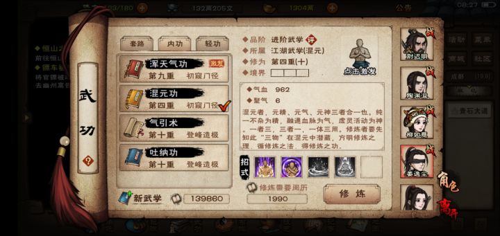寒冰诀,80内功修为怎么凑?分享下我个人的搭配,仅供参考浑天和混元都不用点满,气引术和吐纳点到10重且点满(需要阅历少)