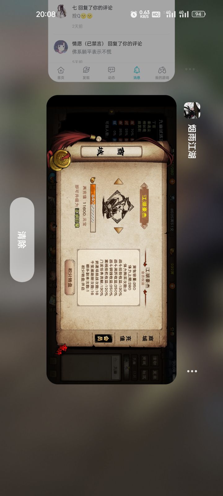 首先,说一下我玩烟雨也挺久了,多久呢?反正我开始玩的时候是没有小势力,剑王阁这些东西,也没有现在那么多名字听起来就很厉害的武学,老玩家应该都知道风雪谷,之前还出了个武器幻化,就是可以把武器的外观改变,很多人都觉得烟雨的江湖要变成修真江湖了~(接下来开始正文)第一:如果你是刚玩这个游戏的萌新,是不是很好奇从来没有见过官方?因为taptap论坛就没有官方,这事还要从烟雨江湖的策划骂玩家是蛀虫开始,