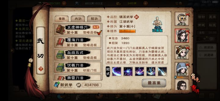 昨天晚上磕了药,第一次把燕王打过去了,因为第一次玩,虽然查了很多攻略,但还是不可避免的踩了很多坑,不然应该能早点通燕王,分享一下武学搭配的避坑点,有啥不对的欢迎指出。1.女剑主,我用的开局3判那个攻略,但是由于操作不熟练,浪费了太多时间,导致女主到了冷月后非常卡,别人都是主角比随从高三五万战力,我这个主角还没随从高,3个随从都镇派了,女剑主还是上乘倚天。开局3判苍狼一定要快,下载按键精灵推演,