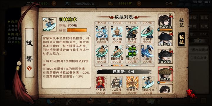 主角除了开局内功用野外浑天,轻工用雁九诱惑的是门派武学 出师不需要的,全部用野外