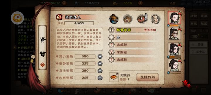 空绝谷【前置需求】:主角达到80级,习得万象魔功以及玄阴掌,可以不用学满不用上阵洛阳(18,30)触发剧情(触发不了去看长白山空绝谷石碑再来),来自长白山的“不归客”在擂台上摆擂,已经赢了许多人(16,30)上擂台,打架,战斗过程中不归客发现你的武学可以反弹他的debuff,不打了若万象没有学满,扛过6个回合未死也算打赢不归客兑现承诺,“百两黄金”指黄精*20到洛阳南门附近对话不归客,