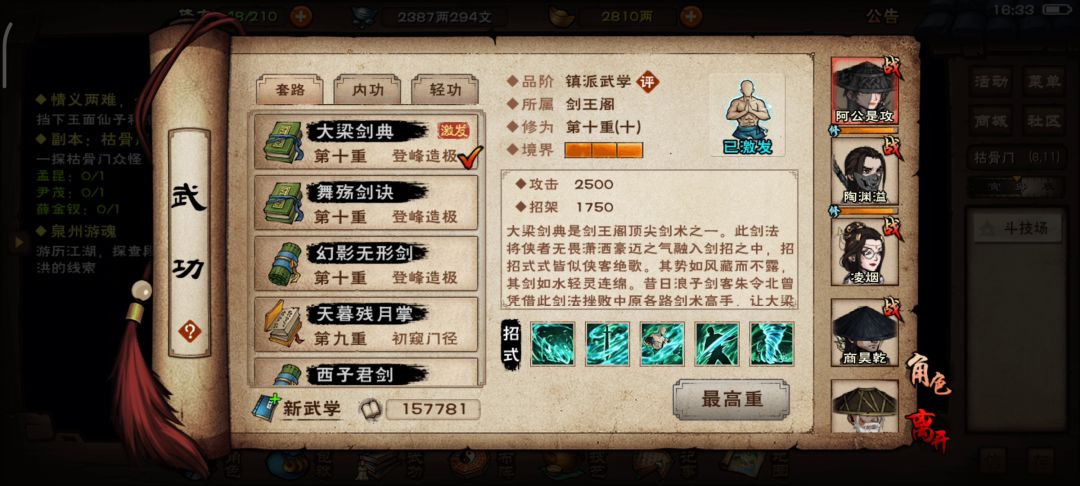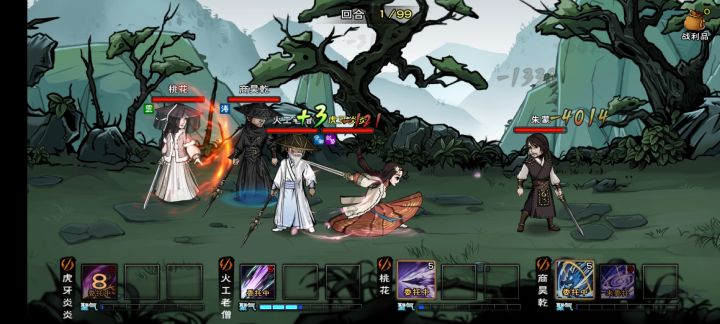 攻略向👀 孟受击三次召唤蛇,所以那三次尽量用大招打,如果第一次大打到了,下一次大基本也可以打到,被挂油buff的回合不理就行了,孟血量少于40%时找药回血,期间一个回合不会攻击,这个回合只要打到他两次,他就找不到药,误服毒药了,所以这个回合很关键,不要给他回到血。 幻影剑也可以换成五狱,泠月和太乙弟子适用😋