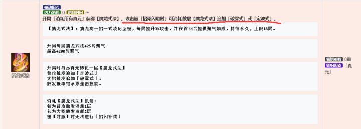 前言正所谓知己知彼才可百战百胜,网上很多人说90级擒龙不强势,但是没有细致攻略说明为啥90级擒龙一般,这篇攻略就来分析一下擒龙手。一、擒龙强在哪?(标红的核心)我们先来了解擒龙手的几个强势点:1.强大的招闪补偿机制(凌波微步骂骂咧咧的离开了直播间.jpg)2.招式可根据加点稳定二连3.高水平续航能力4.buff多【擒龙式法】:+3%攻击/层,首回合+25%聚气/每层,上限18