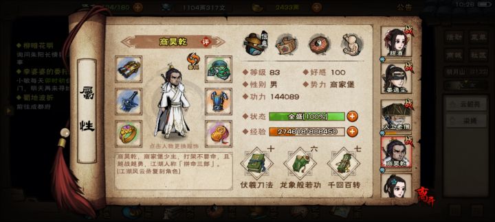 Buff攻击10800,最后打完正好掉攻击10100,后边有数值和武学搭配,熊四方阵,冰老头阴阳,王麟云垂,冰老头暗器带的铁八卦(打不了兵人,默认打血量最高,冰人不算血),相当于没有打冰人8回合过老二,暗器118级,120才能带梅花标打一排,硬生生伤害灌过去的